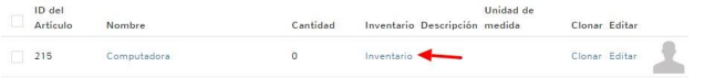 2. Entramos a inventario en el producto aparece Inventario la cual daremos clic y posteriormente con numeración positiva para agregar y negativa para quitar del inventario colocamos la cantidad deseada