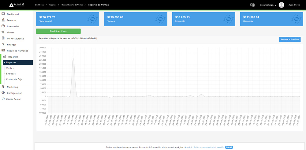 A través de los históricos y los reportes disponibles en Adminit, podrás tener claro el comportamiento de tu negocio y tomar decisiones sobre lo que debes vender, lo que no, en que temporadas, y más.