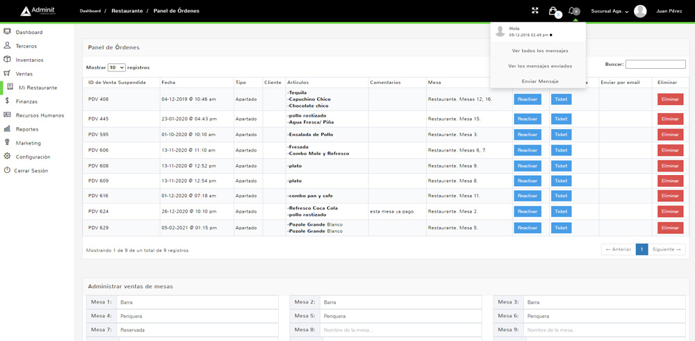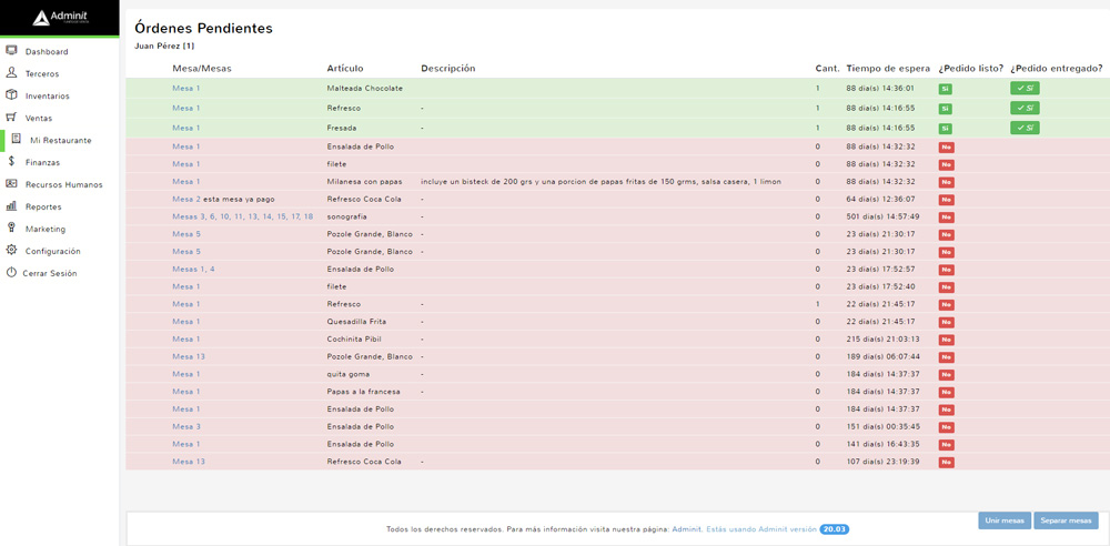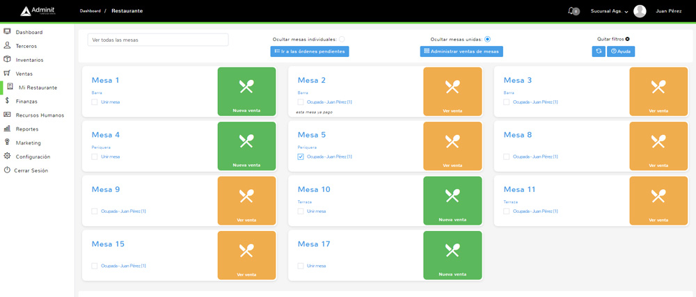No importa si tus clientes juntan unas mesas, piden cuentas separadas o piden para llevar. Tu puedes controlar fácilmente cada pedido.