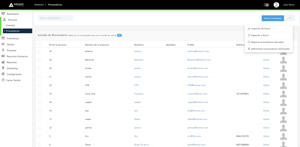 Registro de proveedores