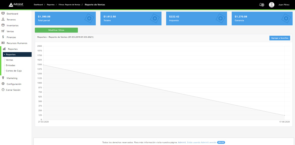 A través de los históricos y los reportes disponibles en Adminit, podrás tener claro el comportamiento de tu negocio y tomar decisiones sobre lo que debes vender, lo que no, en que temporadas, y más.