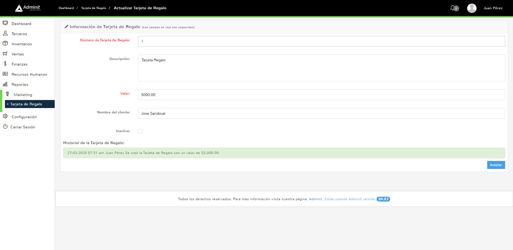 Venta de tarjetas de regalo
