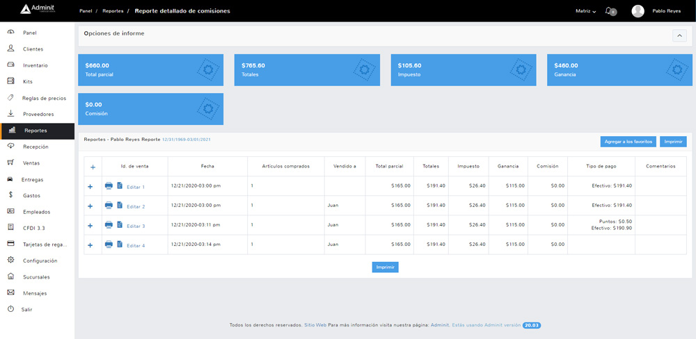 A través de los históricos y los reportes disponibles en Adminit, podrás tener claro el comportamiento de tu negocio y tomar decisiones sobre lo que debes vender, lo que no, en que temporadas, y más.